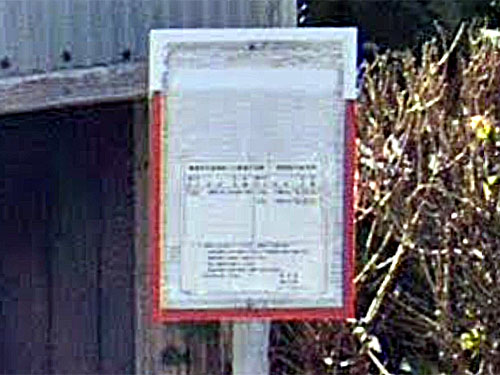 よく知られていると思われる珍名バス停です。明治初期は鬼死骸村という村だったそうです。「蝦夷征伐のため陸奥国へ侵攻した坂上田村麻呂が大武丸(おおたけまる。伝説上の蝦夷の首長、もしくは鬼)を討伐し、その亡骸を埋めたことに由来して鬼死骸と呼ばれるようになったと言い伝えられている…2016年まで路線バスが運行していたが、現在路線は廃止されておりバスは運行していない」(Wikipedia) GoogleStreetView |