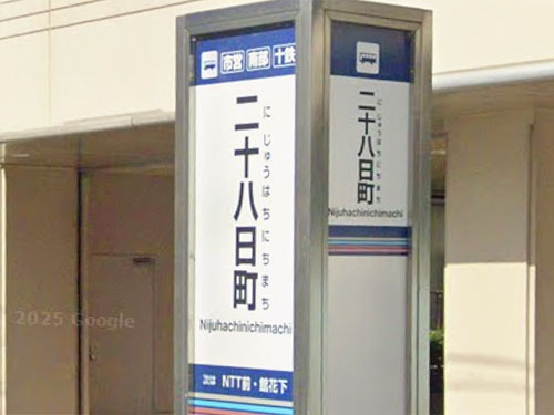 江戸時代の八戸の城下町には、廿三日町、十三日町、三日町、八日町、十八日町、廿八日町(表通り)、廿六日町、十六日町、六日町、朔日町(ついたちを表す)、十一日町、廿一日町(裏通り)といった、日付にちなむ町が12もあり、大変めずらしいことだったそうです(市公式ページ)。「江戸時代に八戸城下で毎月特定の日に「定期市」が開かれていたことに由来します」(GoogleSearchAI)。現在では、廿三日町(ニジュウサンニチマチ)、廿六日町が公的住所として残っています。バス停としては市内には二十八日町の他に、十一日町、十三日町、十六日町、二十三日町があります。 GoogleStreetView |