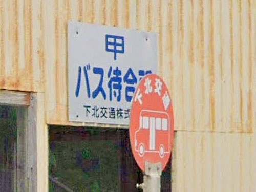 十干の「甲乙丙丁…」の「甲」、1文字のバス停です。公的住所は「風間浦村下風呂甲平ノ下」で、「甲平ノ下」は「かぶとだいらのした」と読むようです(ゼンリン)。一方、バス停の読み方はNavitimeでは「こう」となっています。はっきりした由来は分かりませんでした…。 GoogleStreetView |