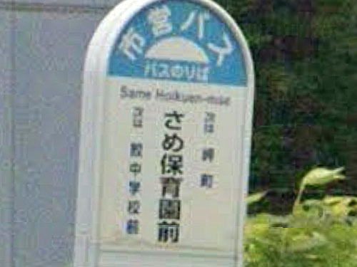 JR鮫駅も存在するので、少し詳しい方は八戸市鮫にある保育園なのだろうと想像されるかとは思いますが、字面をぱっと見ると海のサメが通う保育園のようにも見えて面白いです。隣のバス停は鮫中学校前です。 GoogleStreetView |