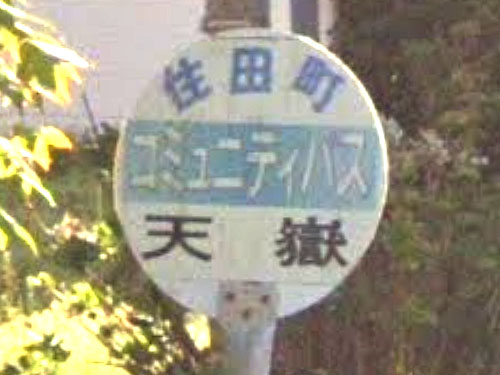 コミュニティバスの停留所が数字の「◯-◯」という形でたくさん定められています。前の「◯」は町内の行政区の番号だそうで、21区まであるとのこと。バス停は「21-6」まで定められています。このバス停の場合、お店の壁に貼ってあります(笑)。 GoogleStreetView |