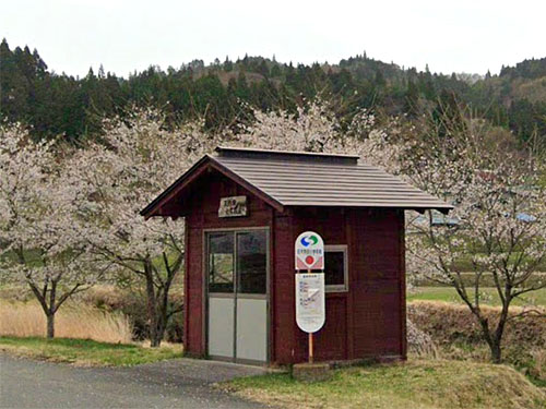 よく知られている珍名バス停でした。明治初期は鬼死骸村という村だったそうです。「蝦夷征伐のため陸奥国へ侵攻した坂上田村麻呂が大武丸(おおたけまる。伝説上の蝦夷の首長、もしくは鬼)を討伐し、その亡骸を埋めたことに由来して鬼死骸と呼ばれるようになったと言い伝えられている…2016年まで路線バスが運行していたが、現在路線は廃止されておりバスは運行していない」(Wikipedia) GoogleStreetView |