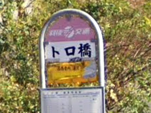埼玉県に土呂駅があるので「とろ」と読む地名には違和感がないですが、カタカナの「トロ」+「橋」は少しユニークだと思いました。元は漢字の瀞らしく、「かつてこの場所にあった「トロ(瀞)」(川の水の流れがゆるやかで、深くなっているところ)に架けられた橋であることに由来します」(GoogleSearchAI)。近くに「トロ橋稲荷神社」もあるそうです。 GoogleStreetView |