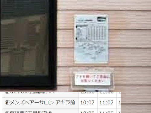 ヘアーサロンでファーストネーム付きの店名のバス停は少ないです。イオンモール幕張新都心グランドモールの無料巡回バスのバス停です。壁に時刻表と路線図が貼ってあるようです。 GoogleStreetView |