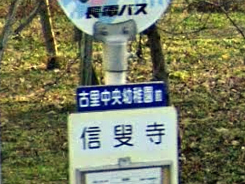 バス停標が見当たらないのですが、名前がかわいいのでとりあげてみます。系統図も見当たらず、バス乗り場がここかどうかも分かりません。ぱおぱおは子育て支援施設だそうです。現時点では木曜のみ運行とのこと。 GoogleStreetView(バス停標、バス乗り場不明) |