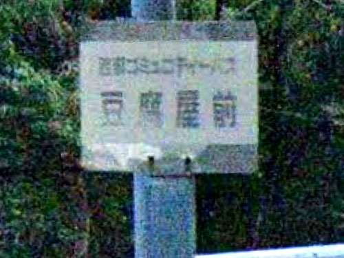 「こんにゃく」が付くバス停はレアです。ここはこんにゃくの加工場です。「現在では希少価値ともいえる在来種の生芋だけを使った手作りの矢筈コンニャク…」(村長あいさつ)。バス停が奥まったところにあってバス停標の名前が見えないのが残念です…。 GoogleStreetView |