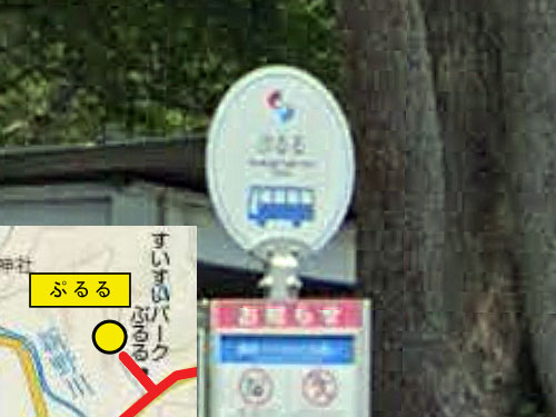 なかなかの長さです。漢字かな混じりだとこちらのほうが長くて23文字、読みでは41文字。Googleでは「水落町もくせい会館入口」で終わっていますが、Navitimeでは漢字かな混じり23文字がきっちり表示されるので、そちらを採用します。 GoogleStreetView |