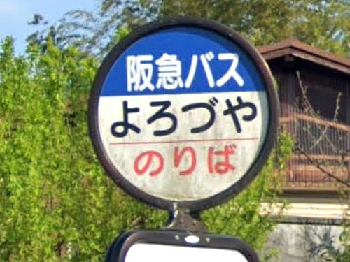 難読バス停です。字からは想像できない読みなので、知らないと読めません。「猪名川の靄(もや)が紫色の雲となり、西鏡寺境内の松に漂ったという幻想的な「紫雲の松」の伝説に基づき、もともとの地名「ゆうだ(結の田)」に「紫合」の字が当てられたとされています」(GoogleSearchAI+家庭画報)。