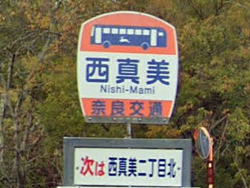 人名のように読めるバス停です。「にし・まみ」さん。 GoogleStreetView(2023) |