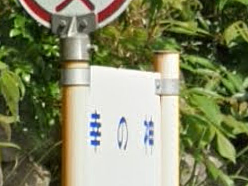 珍しい漢字「鮴」が使われています。近くの海域でメバルが多く獲れたことに由来するそうです。丸板に書かれた「おと姫バス」は可愛い感じですね。他に「鮴口」バス停もあります。 「鮴」という漢字は地域によって使われ方が異なり、石川県では淡水魚のゴリを表すそうです。 GoogleStreetView |