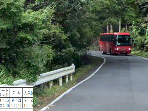 シンプルな「ダム」バス停は、ここと、鳥取県のものしか把握できていません。バス停標がないのが残念です。バス停の位置は、国土交通省のデータによります。なお、GoogleMapsでも国土地理院地図でも、この周辺にそれなりの大きさのダムは見当たりませんでした…。 GoogleStreetView |