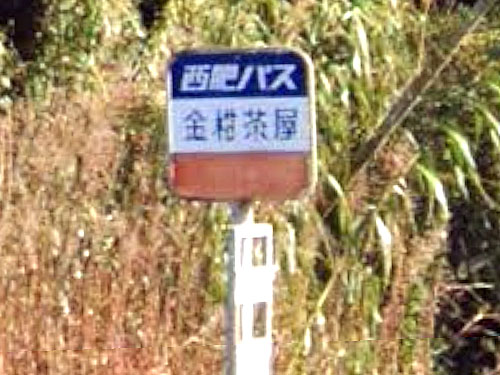 「金柑」がつくバス停は他に把握できていません。由来は分かりませんでした…。ストビュで周辺を見ましたが、茶屋らしき建物は見当たりませんでいた。 GoogleStreetView |