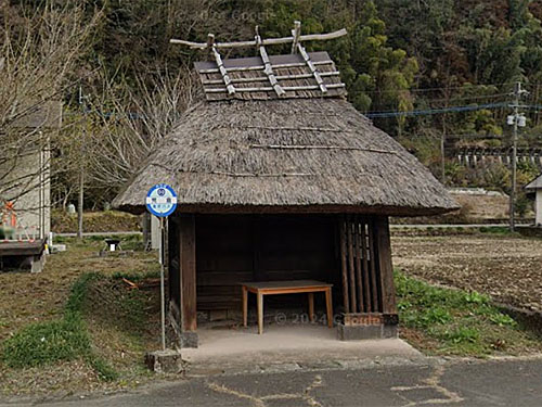 珍名ではありません。藁葺きの可愛い感じのバス待合小屋がありました。 GoogleStreetView |