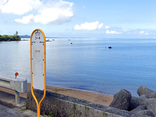 綺麗な海が見える海辺のバス停です。個性的な名前ですが、由来は分かりませんでした…。西側の海に面しているため、夕日スポットなのだそうです。 北岸の大田バス停もよい感じに海が見えます。 GoogleStreetView |