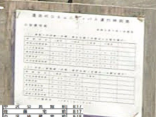 中村 | 中村宅前(北海道むかわ町、豊浦町)、船見ヶ丘中村宅(北海道)、中村武様宅前(岡)(新潟)、中村益雄様宅前(夏中)(始発)(新潟)、中村さん宅前(広島県) |