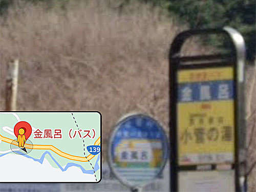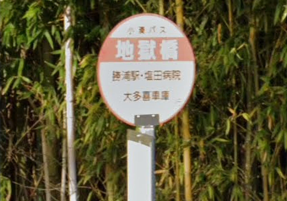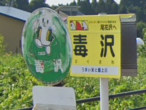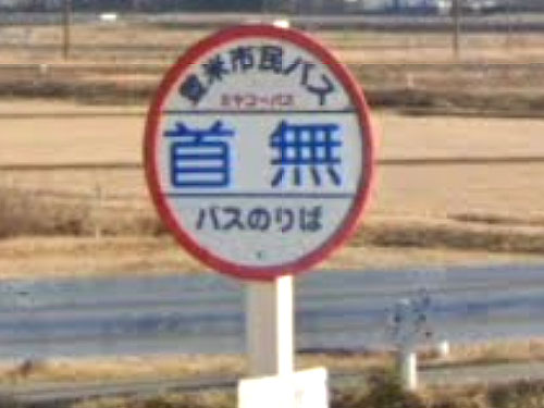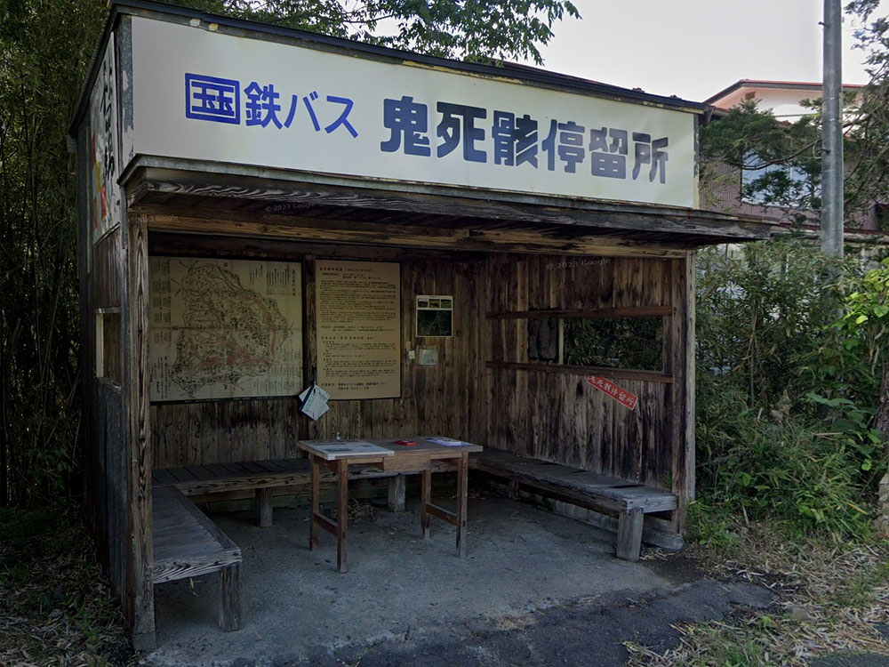 よく知られていると思われる珍名バス停です。明治初期は鬼死骸村という村だったそうです。「蝦夷征伐のため陸奥国へ侵攻した坂上田村麻呂が大武丸(おおたけまる。伝説上の蝦夷の首長、もしくは鬼)を討伐し、その亡骸を埋めたことに由来して鬼死骸と呼ばれるようになったと言い伝えられている…2016年まで路線バスが運行していたが、現在路線は廃止されておりバスは運行していない」(Wikipedia) GoogleStreetView |
