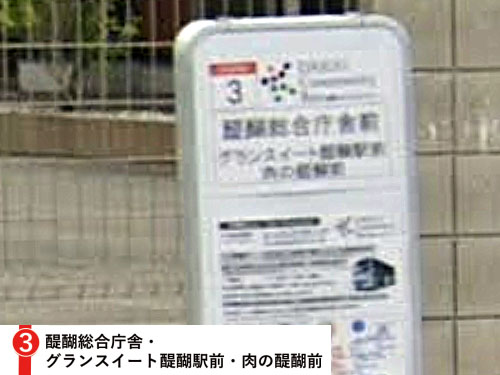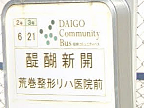 醍醐コミュニティバスの、3単語複合型のバス停名です。Navitimeは省略形で掲載しています。 |