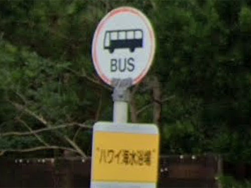 ホテルマハイナウェルネスリゾートオキナワ | 沖縄県では長い方のバス停名です。バス停標の名前が見えないのが残念です…。 |