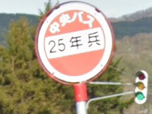 北海道の開拓と防備を兼ねて置かれた屯田兵の村のうち、明治25年に入植した場所の地名だったそうで、今は地名としては残っておらず、バス停に名残をとどめているとのこと。他に「6年兵」「24年兵」バス停も。