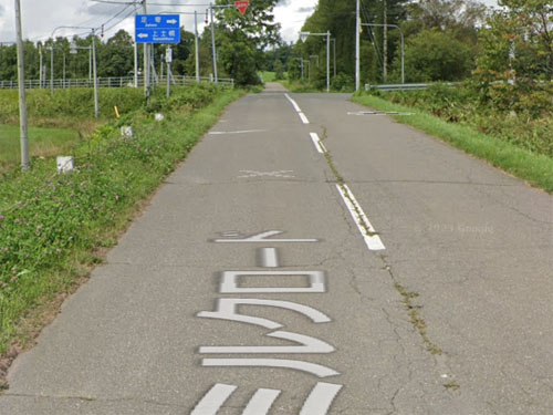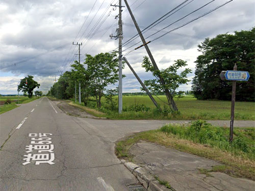 「〇〇号}+「道道」+「〇〇号」という変わった成り立ちのバス停です。「道道」のように「道」の字が2回繰り返されるのも個性的です(まぁ、北海道道なので当然といえば当然ですが)。バス停標が見当たらないのが残念です(中札内村は村中心部でもバス停標がないので、もしかしたら全滅なのかも…)。ストリートビューで見回すと、村道44号と道道55号の交差点になっていますので、バス停名はそういう意味かと思います。同様のバス停に、45号道道55号、47号道道55号があります。