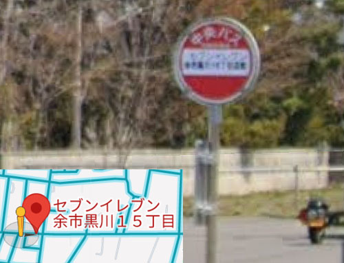 | 北海道 | セブンイレブン余市黒川15丁目店前 | 余市町 | ![]() GoogleStreetView |