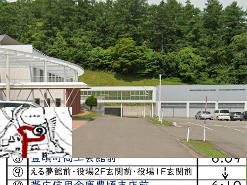 よい形の「ハルニレの木」がある町です。何度か行きました。このバス停は、駐車場にGoogleStreetViewが入れていないので、バス停標が見つかりませんでした。それにしても長い名前です。2階と1階が名前に入っていますが、どうなっているのでしょうね…。