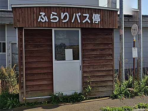 よく知られている地球岬展望台に一番近いのはこのバス停のようです。ここから徒歩約15分の展望台からは地球が丸く見える、と評判です。「地球」はアイヌ語の「断崖」を意味するチケブが変化したそうです。 GoogleStreetView |