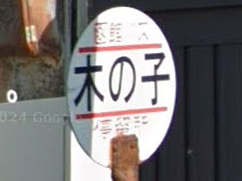 かわいい印象のバス停名です。木ノ子が公的住所になっています。1902年までは木ノ子村だったそうです。「木材の産地として有名だった木ノ子地区ですが、木を切った後、切り株から茸(きのこ)が生えてきたので木ノ子となったと言われています」(上ノ国町公式HP)。 GoogleStreetView |