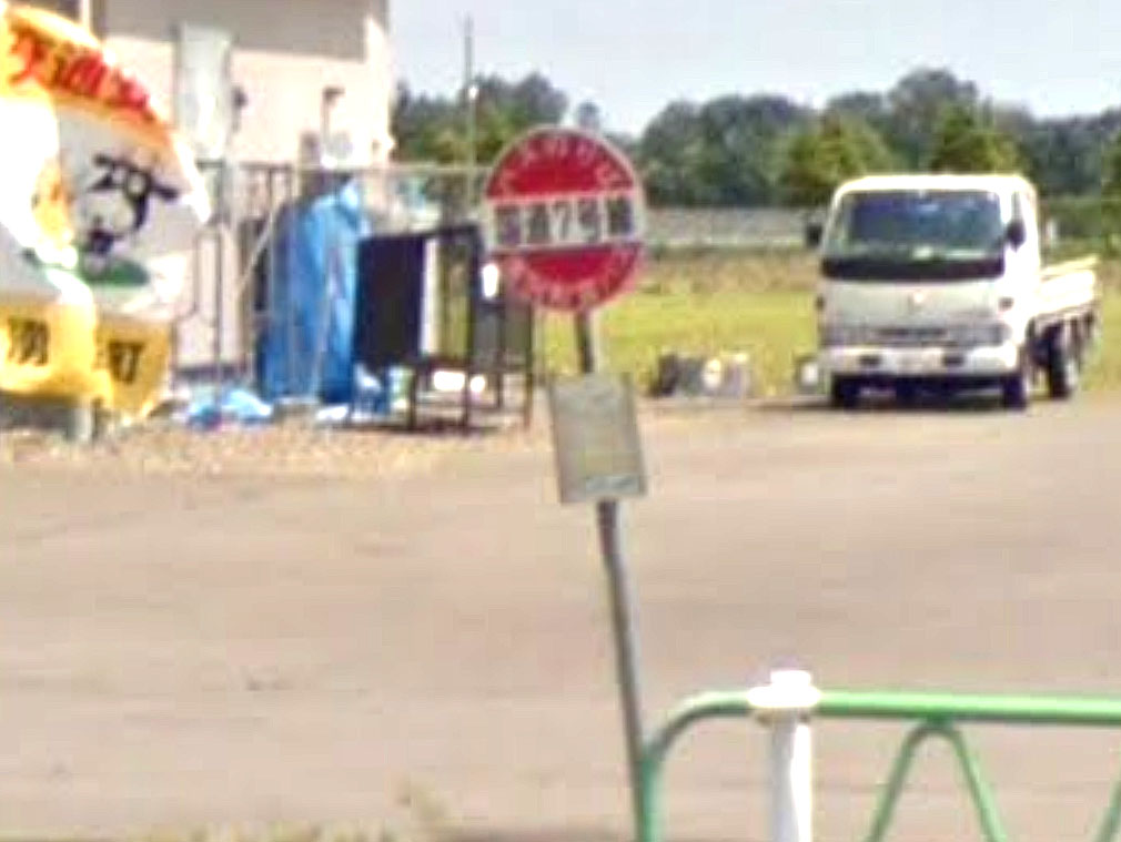 除雪車の飛ばした雪でバス停ポールが傾いたのでしょうか。名前が確認できませんが、緯度経度から調べた「4号半」バス停はここになります。「4号」や「5号」といった「◯号」バス停は北海道でよく見かけますが、「半」がついているのは珍しいと思います。ほぼ東西に走る道の延長上に、「馬追4号半排水機場」という施設があるので、その道が確かに「4号半」なのかも知れません。 2023年から町内の広い場所でデマンドバスのエリアが設定され、旧4号半バス停はどこからでも乗降できるエリアに含まれたので、バス停ポールは撤去されたかも知れません。 GoogleStreetView |