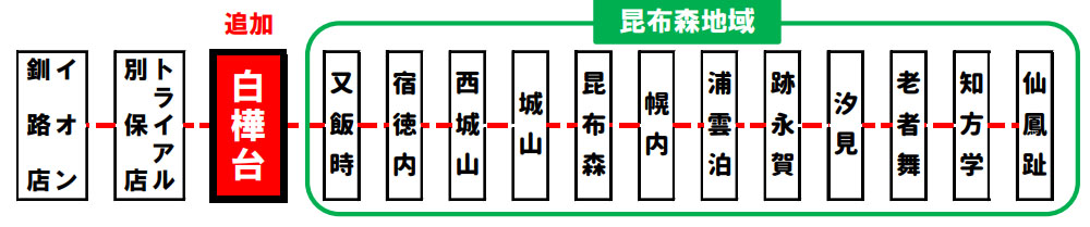 「ポピポイ入口」の他、「スケレベ」「局前」「住宅前」など、ちょっと気になる名前のバス停を通る路線(道南バス貫気別発荷負経由富川高校行の朝1本のみの路線)が2023年4月10日に区間「運休」(貫気別-荷負間)となったようです。ポピポイ入口のStreetViewは2023年4月撮影ですがまだバス停標識が残っていました。 GoogleStreetView |