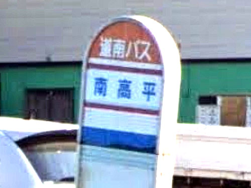姓名のように見えるバス停名です。「みなみ・こうへい」さん。高平町が公的住所になっています。 GoogleStreetView |