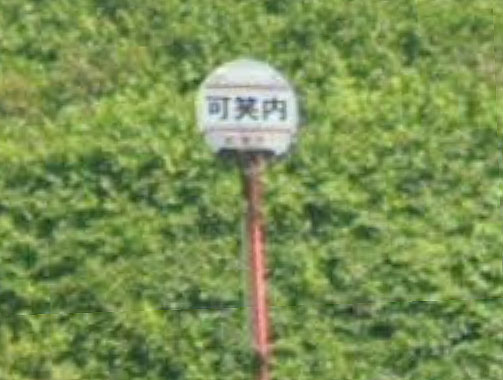 不思議な響きのバス停です。由来は分かりませんでした…。2022年のバス停データには存在しますが、GoogleMapsでは「閉業」と表示されます。 GoogleStreetView |