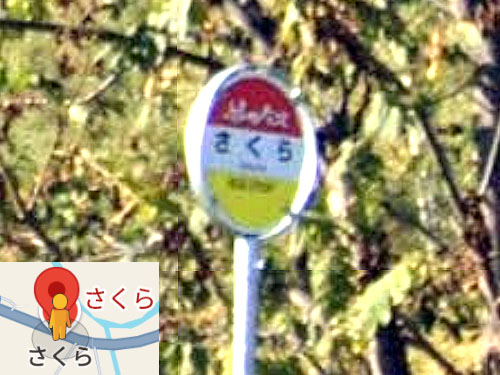 おそらくひらがな3文字の「さくら」バス停は日本でここだけです。太平洋戦争前に分村される際、植物の名前が地区名としてつけられました。さくらの他、「かつら」「かえで」「やなぎ」「おもと」がバス停として残っています。バス停のない農業集落名:しらはぎ、たちばな、のぎく、すみれ、つつじ、あやめ、いちゐ、とどまつ、くろまつ、あかまつ、からまつ GoogleStreetView |