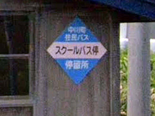 住所が書いておらず、どこでも通用するシンプルな名前です。「バス停」まで含めて正式名称のようです。Navitimeによると全国で「スクールバス停」だけのバス停はここにしかない模様です。 GoogleStreetView |