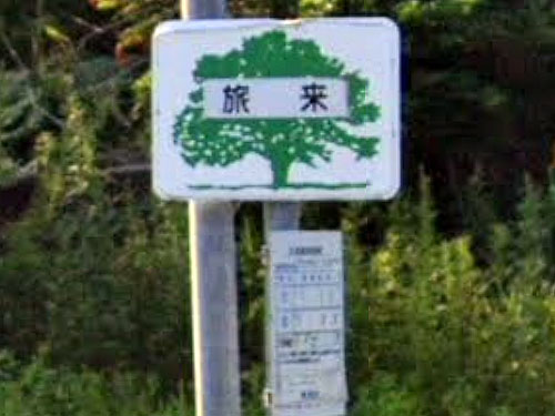 旅+来という、なかなかロマンチックな組み合わせの漢字が充てられています。「「タプ・コプ・ライ」と発音すると「タプ・コプ」は丸山、「ライ」は「死んだ」、すなわち「丸山で死んだ」となる。しかし、別に「タプカル・ライ」と発音すると「タプカル」は「鼓舞する」となり「鼓舞して死んだ(ところ)」の意味になる。旅来コタンのアイヌと日高アイヌが戦った折に、戦いに傷つき死に臨んで鼓舞した酋長の伝説があるが、地名との時間的前後関係は不明である」(豊頃町役場)。豊頃町の名物、はるにれの木がバス停標にデザインされています。 国道336号線が十勝川でまだ分断されていた時代に、無料の渡し船が発着していた集落でもあります。渡船国道としては最後でした。旅来渡船記念の碑が設置されています。現在渡し船の役割は十勝河口橋が担っています。 GoogleStreetView |