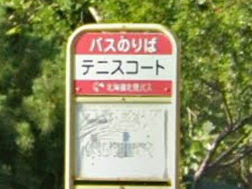 「テニスコート前」でもなく、そのものズバリな名前です。 GoogleStreetView |