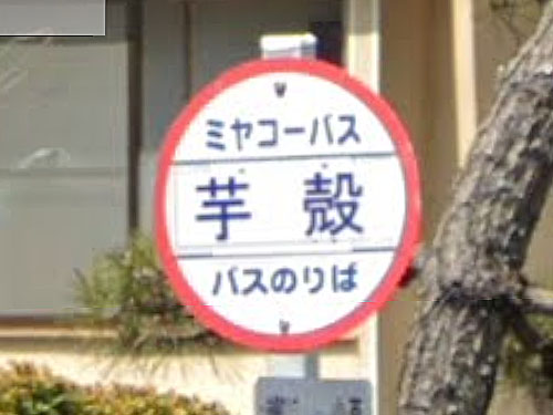 芋殻とはあまりありがたくなさそうな名前ですが、「かつて、里芋をいっぱい栽培して収穫できる場所だったから」とのこと(ミヤテレ)。昔は住所になっていたそうです。 GoogleStreetView |