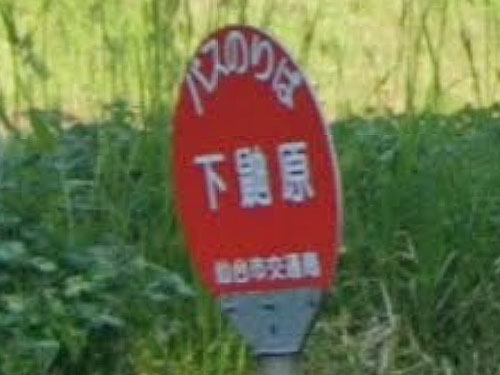 姓名のように見えるバス停です。「しも・あいこ」さん。 GoogleStreetView |