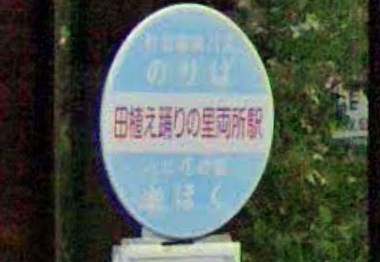 両所の田植え踊りは、ユーモラスなお面をつけることが特徴でよく知られているそうですが、鉄道の駅でもないのになぜ「駅」なのかは調べても分かりませんでした…。バス停の後ろがなにかの施設になっているようです。 GoogleStreetView |