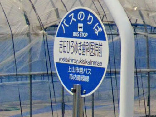 「かみの」はバス停のある場所の住所ではありません。由来は分かりませんでした…。 GoogleStreetView |