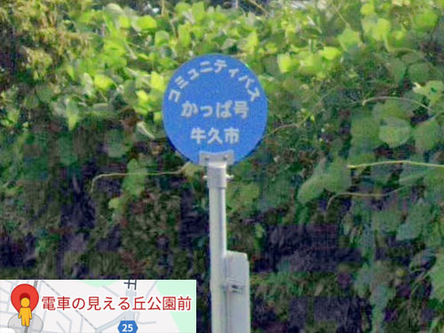| 茨城県 | 電車の見える丘公園前(でんしゃのみえるおかこうえんまえ) | 牛久市 | ![]() GoogleStreetView |