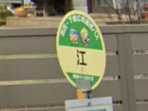 漢字1文字、読みも1文字の短い名前です。ローマ字でも「E」1文字の、日本で唯一のバス停と思われます。近くに「え歯科医院」があります。江は住所なのですが、由来は分かりませんでした…。 GoogleStreetView |