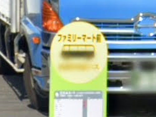 コンビニチェーン名のバス停は全国的に少ないそうです。が、同じコミュニティバスにファミリーマート前とセブンイレブンがありました。 GoogleStreetView |