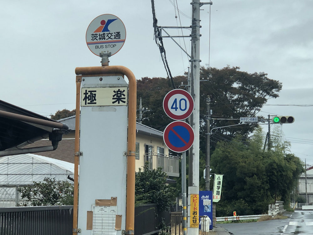 「極楽はここにあったのかぁ」と少し感動しました(笑)。何の変哲もない郊外の集落ですが。バス停の由来はこの近くにある極楽橋という橋の名前にちなみます。「その橋名は昔、付近の香取稲荷神社に参拝した殿様にまつわる話から出ているといわれるが、本当のところはこの地に住む人々にもわかっていない」(常陽藝文 2000/06)。 GoogleStreetView |