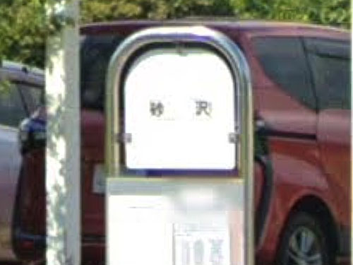 難読バス停です。由来はわかりませんでした…。通常は「峪」でさこと読み、谷を表すそうです。姓名のようにも読めるバス停です。「さこ・しんぺい」さん。