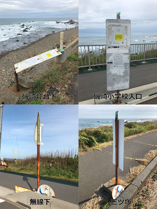 | 茨城県 | 磯崎灯台下、 磯崎小学校入口、 無線下、 赤坂稲荷下、 三ツ塚 |