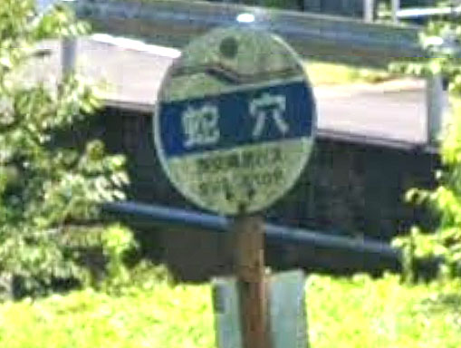 熊穴と書くバス停の次は蛇穴です。住所もバス停もじゃけちと読むそうです。バス路線の終点になっています。山から大蛇が現れ、大きな穴が出来たと言い伝えられているそうです。 GoogleStreetView |