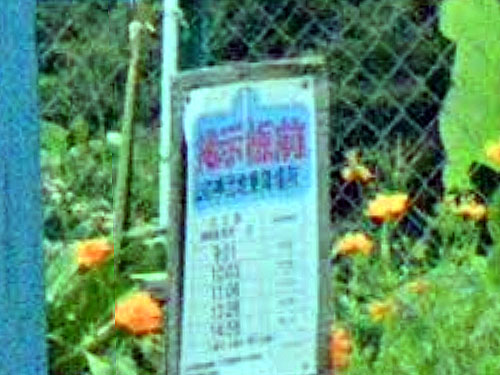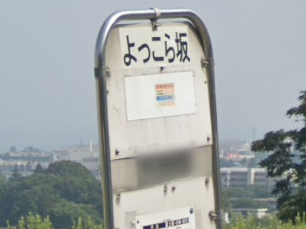 よっこら坂の先にあります。どこでも通用しそうなシンプルな名前です(笑)。「掲示板前」で完結するバス停は他にはないようです。 GoogleStreetView |