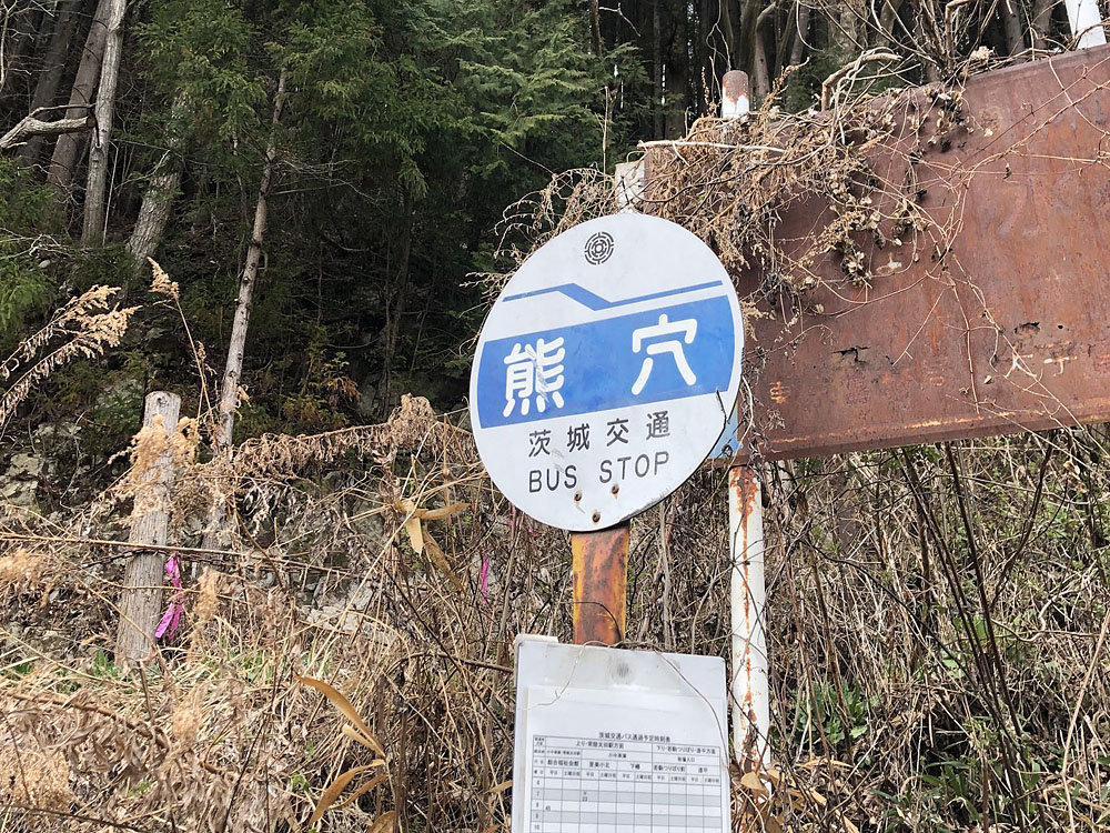 名前の由来は分からなかったですが(熊穴の有無とか)、なかなかおっかないバス停名です。実際にツキノワグマは何度も近くで見つかっているそうです。2023年現在バスは1日4往復。 GoogleStreetView |