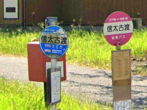 とても長いバス停名で、一時期は日本一長かったこともあったようでしたが、最新のストリートビューではバス停標が見えません。古いストビュでは名前がはっきり写っていなくて残念です…。GoogleMapsによれば、近くのレイクエコーという施設の敷地内に「レイクエコー」バス停があり、そこにはストビュがはいれていません。また、Maps上では白浜少年自然の家は閉業と表示されます。行方市公式ページとNavitimeにレイクエコーバス停の時刻が掲載されています。 GoogleStreetView(2018) |